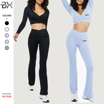 กางเกงเอวสูงยกสะโพกกางเกงโยคะกางเกงขาบานกว้างกางเกงฟิตเนสของผู้หญิงแห้งเร็วโลโก้แบบกำหนดเอง
